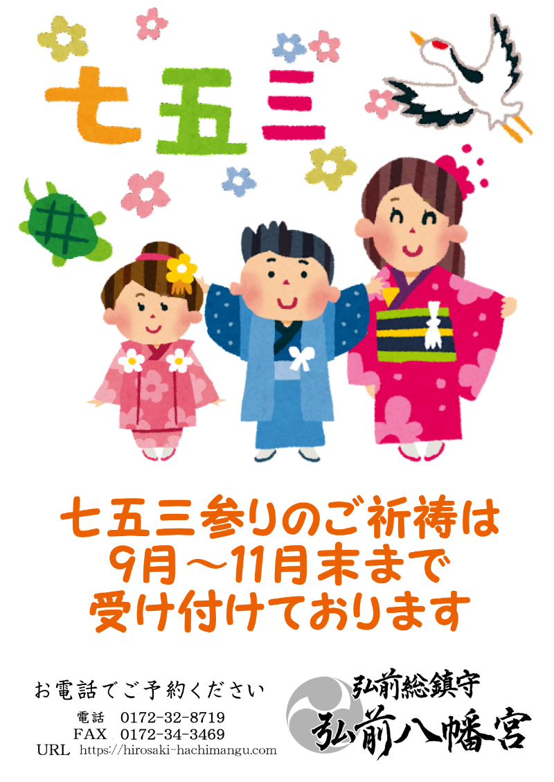 9月1日より七五三詣のご祈祷が始まります